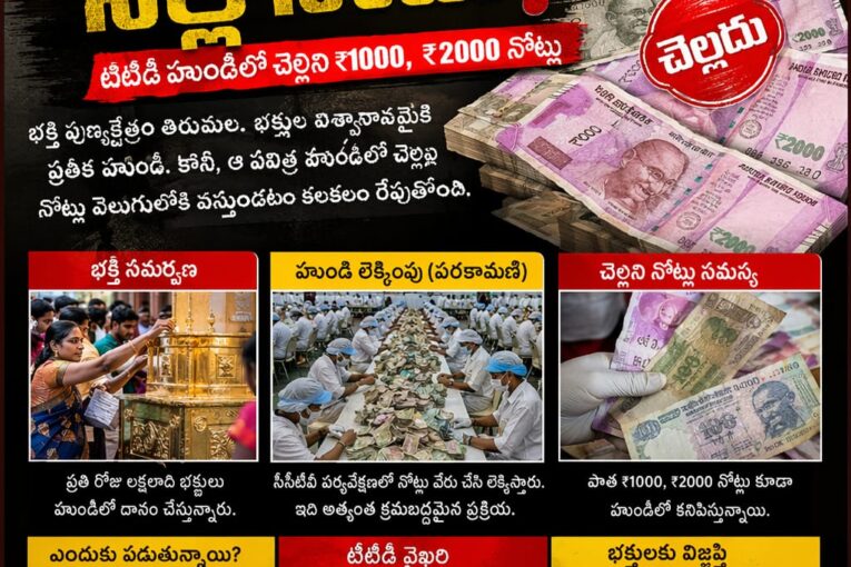 మొత్తానికి, తిరుమల హుండీ మన విశ్వాసానికి ప్రతీక. కానీ అందులో పడుతున్న చెల్లని నోట్లు మన సమాజంలోని లోపాలను బయటపెడుతున్నాయి. “తెల్ల కోటు మాటున నల్ల నోటు” అనే విమర్శ నిజం కాకుండా ఉండాలంటే, మన ఆలోచనలు మారాలి, మన దానం మారాలి.